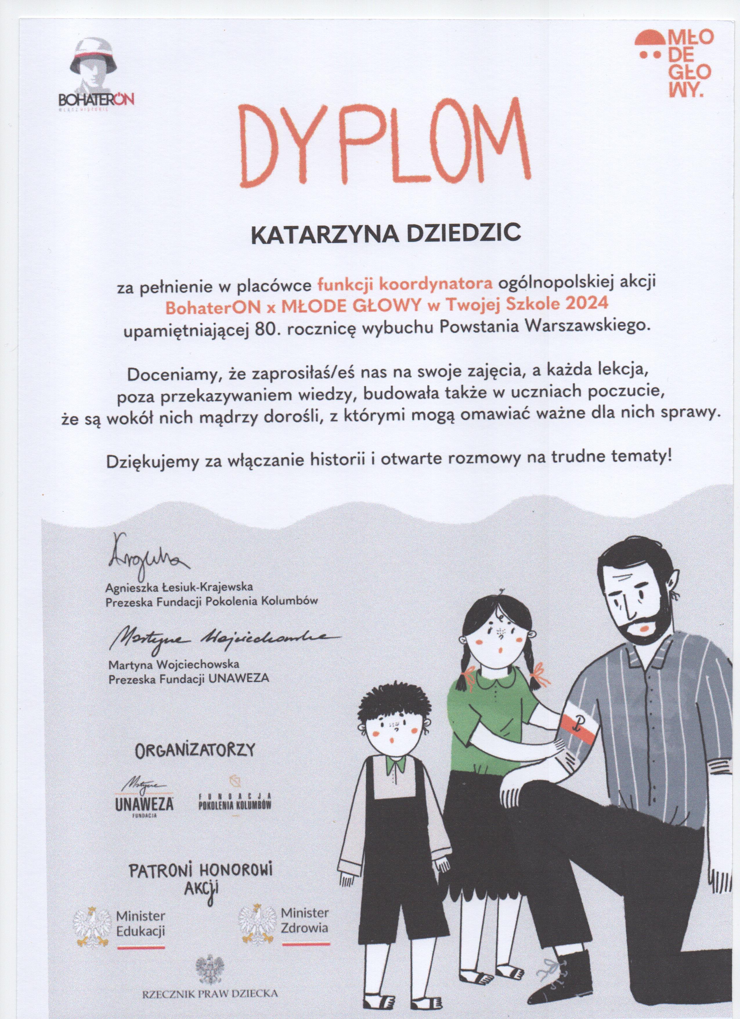 Po raz kolejny uczniowie naszej Szkoły wzięli udział w Narodowym Czytaniu pod honorowym patronatem Prezydenta Rzeczpospolitej Polskiej Andrzeja Dudy z Małżonką. W ramach podziękowania Szkoła otrzymała podziękowanie oraz piękny egzemplarz "Kordiana" Juliusza Słowackiego:
