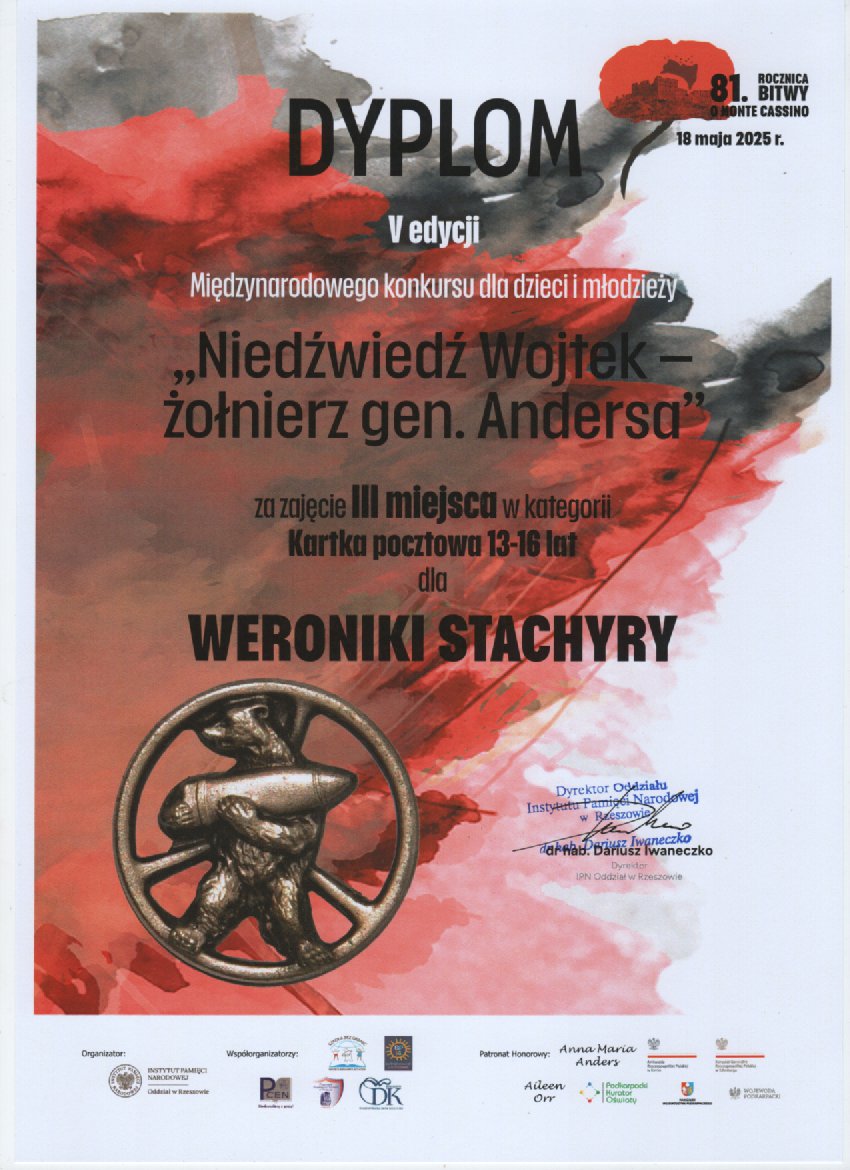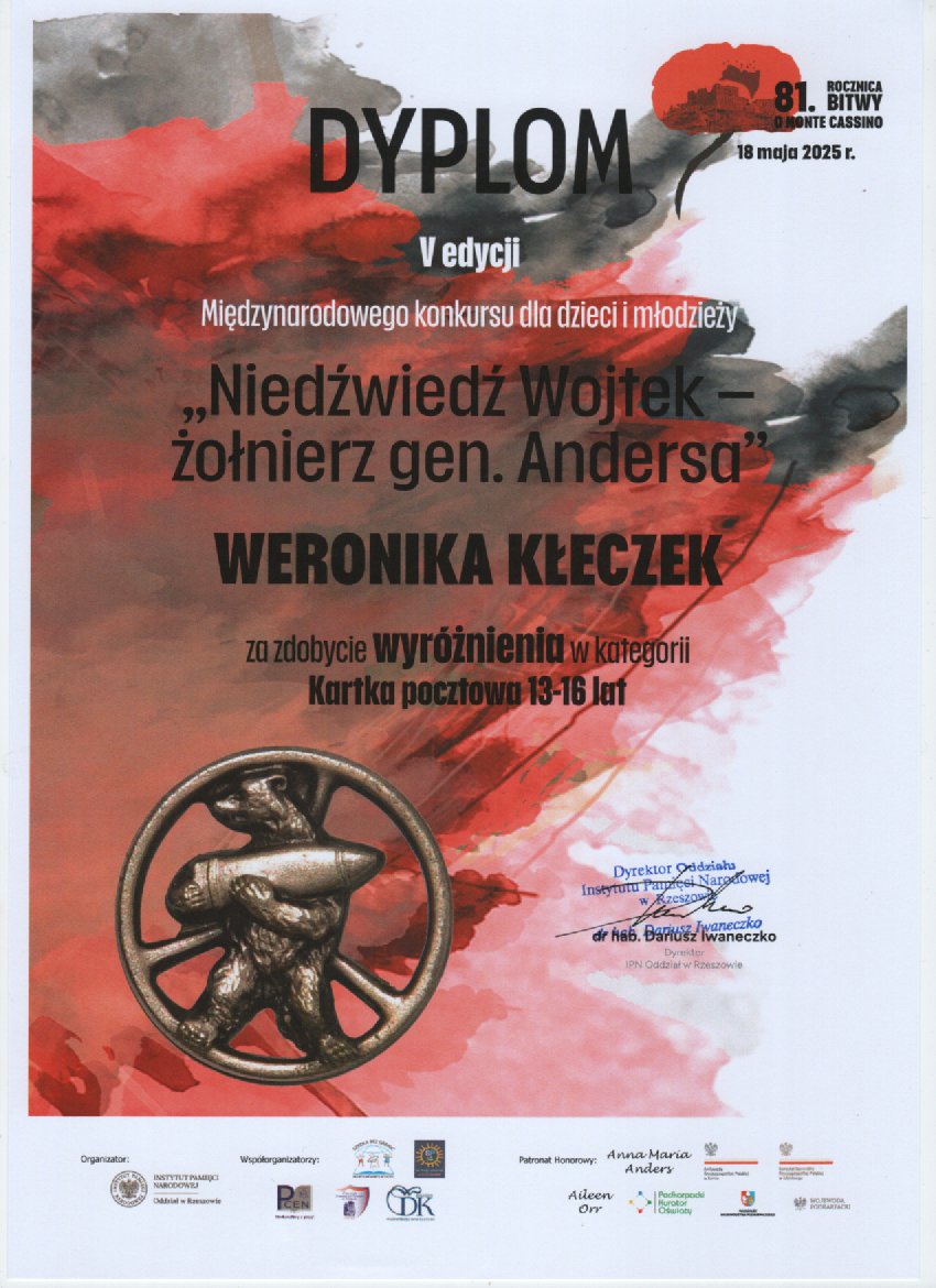 Nasza uczennica Gabriela Organiściak otrzymała wyróżnienie w XII KONKURSIE PIOSENKI PATRIOTYCZNEJ I ŻOŁNIERSKIEJ - GRATULUJEMY!