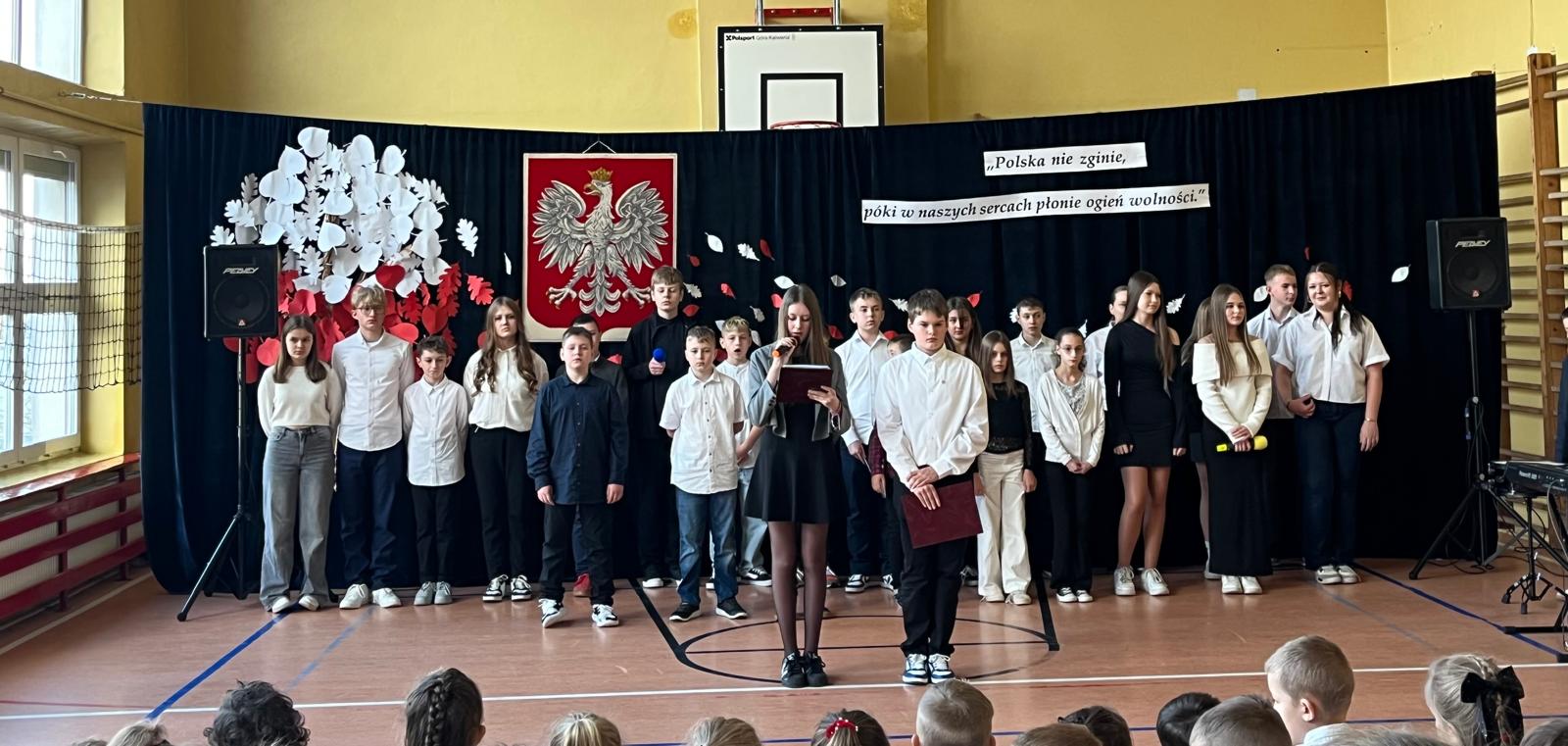30 kwietnia 2024 roku w naszej szkole odbyła się uroczysta akademia z okazji 233 rocznicy uchwalenia Konstytucji 3 Maja. Spotkanie zostało przygotowane przez uczniów klasy czwartej oraz siódmej, którzy pracowali pod opieką pań: Joanny Chrzanowskiej, Lucyny Pruchnik i Renaty Weber. Zaprezentowano wiersze i piosenki patriotyczne oraz krótką historię powstawania pierwszej konstytucji w Europie. Dziękujemy uczniom za zaangażowanie!